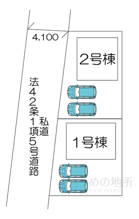 | 接道状況等 | 一方道路、西側 私道 幅員約4.1m | ||