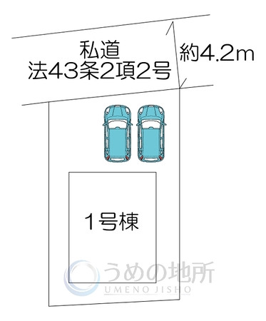 | 接道状況等 | 一方道路、北側 私道 幅員約4.2m | ||